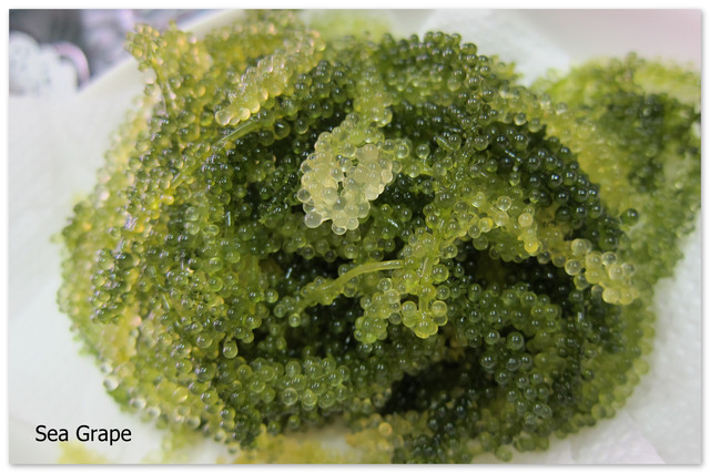 這是高級日本料理店才吃得到的海葡萄喔!一顆顆晶瑩剔透的綠色小球,吃起來口感脆脆QQ的很有彈性,像是魚子醬,所以又稱綠色魚子醬。我就這樣吃了一整盤,沾著日本進口的特殊醬汁,吃進嘴裡時有波波的聲音,還有海水鹹鹹的味道,我真是太有口福了!