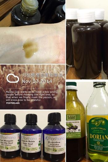 今天的台東終於有秋天的感覺了~小助理說她的皮膚有點乾癢,需要來點植物油滋潤,於是我便立刻調製了今年冬天給家人使用的潤膚按摩油!因為大家都喜歡月桂橄欖皂的味道,所以就加了冷壓月桂籽油,這種油在中東產區算是非常珍貴的油,不只是可以拿來做肥皂和油膏,也是跌打損傷的按摩油喔!